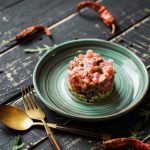 This elegant tart features a savory cream cheese mousse inside a crisp dill-flavored crust, all topped with gleaming slices of smoked salmon.